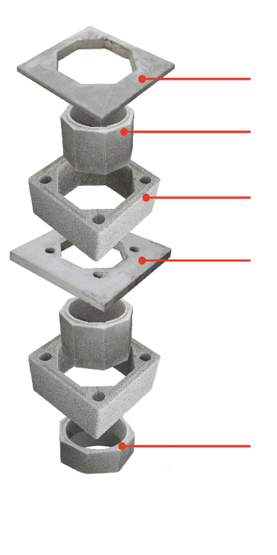 Our component based system is made up of inner and outer blocks that are installed with staggered joints for safety and stability. The double layer of pumice blocks, separated by an air gap, maximizes the chimney performance. This system is the only masonry chimney system tested and listed to UL 103HT (2100° High Temperature) standards.