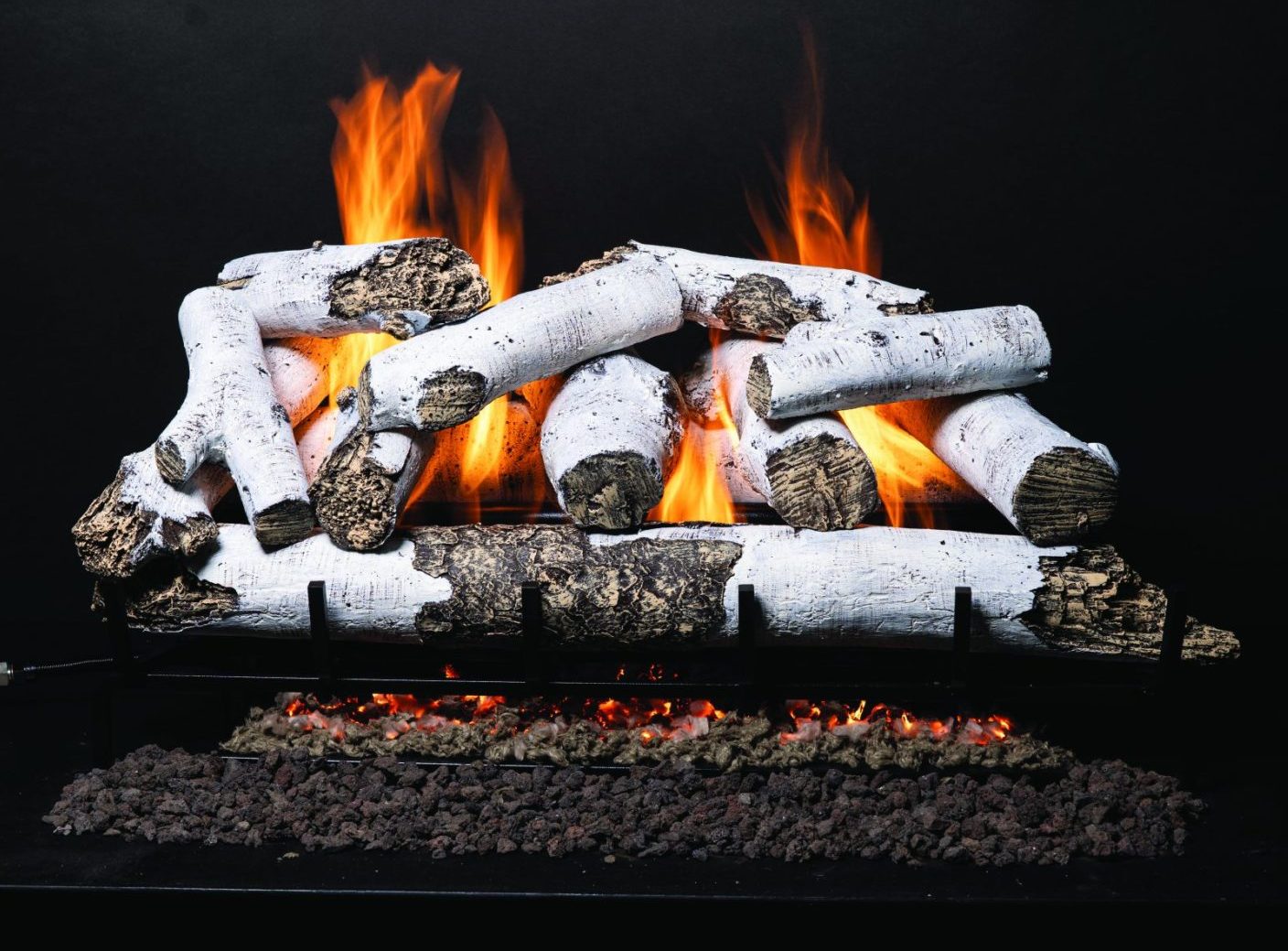 Lively flames and a large ember bed highlight the handcrafted logs, adding efficient heat and unmatched beauty to any fireplace. Featuring the exclusive three-tiered Isoflames Stadium Burner and log set options: Weathered Oak or Birch.
